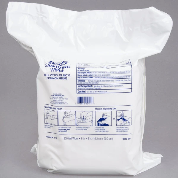 Purell® 9118-02 Hand Sanitizing Wipes, 1200 Count Refill Bag – 2/Case