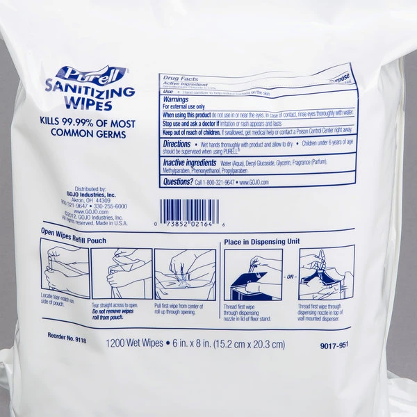 Purell® 9118-02 Hand Sanitizing Wipes, 1200 Count Refill Bag